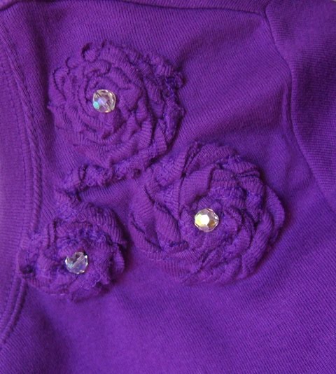 I made another shirt to put in my Etsy shop. It's a small (4-6) ribbed tank top with four handmade rolled roses with crystal centers. I used the leftovers from another project to make the roses and I think the black looks great on the hot pink. Check my Etsy shop in the right side bar and click on the shirt or any photo there to take you to my shop. There you can view price and get more detailed photos.