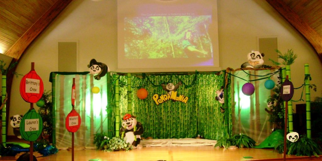 God is Wild About You! This is the reason for my lack of posts for the past few days. (Click on photo for a larger view.) We decorated the sanctuary on Sat. from 9:00-12:00 and have been tweeking it since. We had over 200 kids and leaders here yesterday and we had a good day even though it rained on half the kids while we were still registering them. Busy, busy and on top of that we have a funeral here today and I'm playing for it. Death does not seek convenience. The deceased would have loved this backdrop, though, so we're celebrating her life here. Onward and Upward! Thank you, Group.com for the wonderful idea and resources and especially Cheryl and Mary who organized it and all the helpers who make it a success. Thank you, God, for your gift to us.